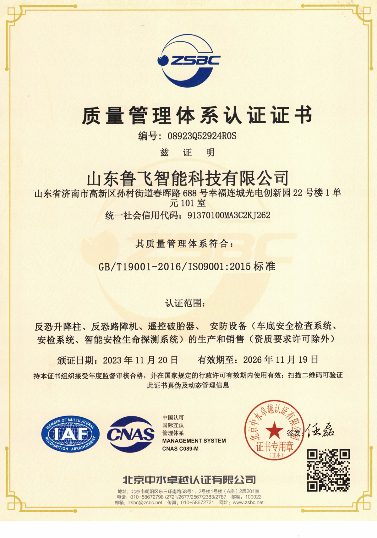 魯飛智能科技有限公司是集“設計、研發、生產、銷售”為一體的高新技術企業。專業從事反恐防暴升降路樁、防暴路障、破胎器、車底檢測系統、微震生命探測儀、安檢門、安檢機、拒馬、電動伸縮門、無人機反制系統、無人機反制槍、車載無人機反制、便攜式無人機反制槍等系列產品的生產與銷售。